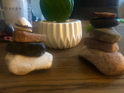Sin embargo, mi hermano las tenía puestas piedra sobre piedra, una sobre otra en grupos de 5 decorándole su oficina al mejor estilo rock balancing y se veían súper lindas. Ahí estaban sus piedras como desafiando la gravedad y con su significado de caminos recorridos.